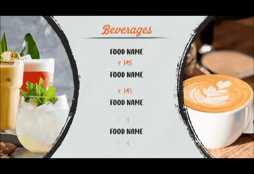 Every template is optimized for quick edits, so you can update prices, images, and offers in minutes without technical hassle — saving both time and cost. Built with smooth animations, mobile-ready responsiveness, and eye-catching transitions, these templates work perfectly for dine-in screens, takeaway promotions, or online menu displays.
